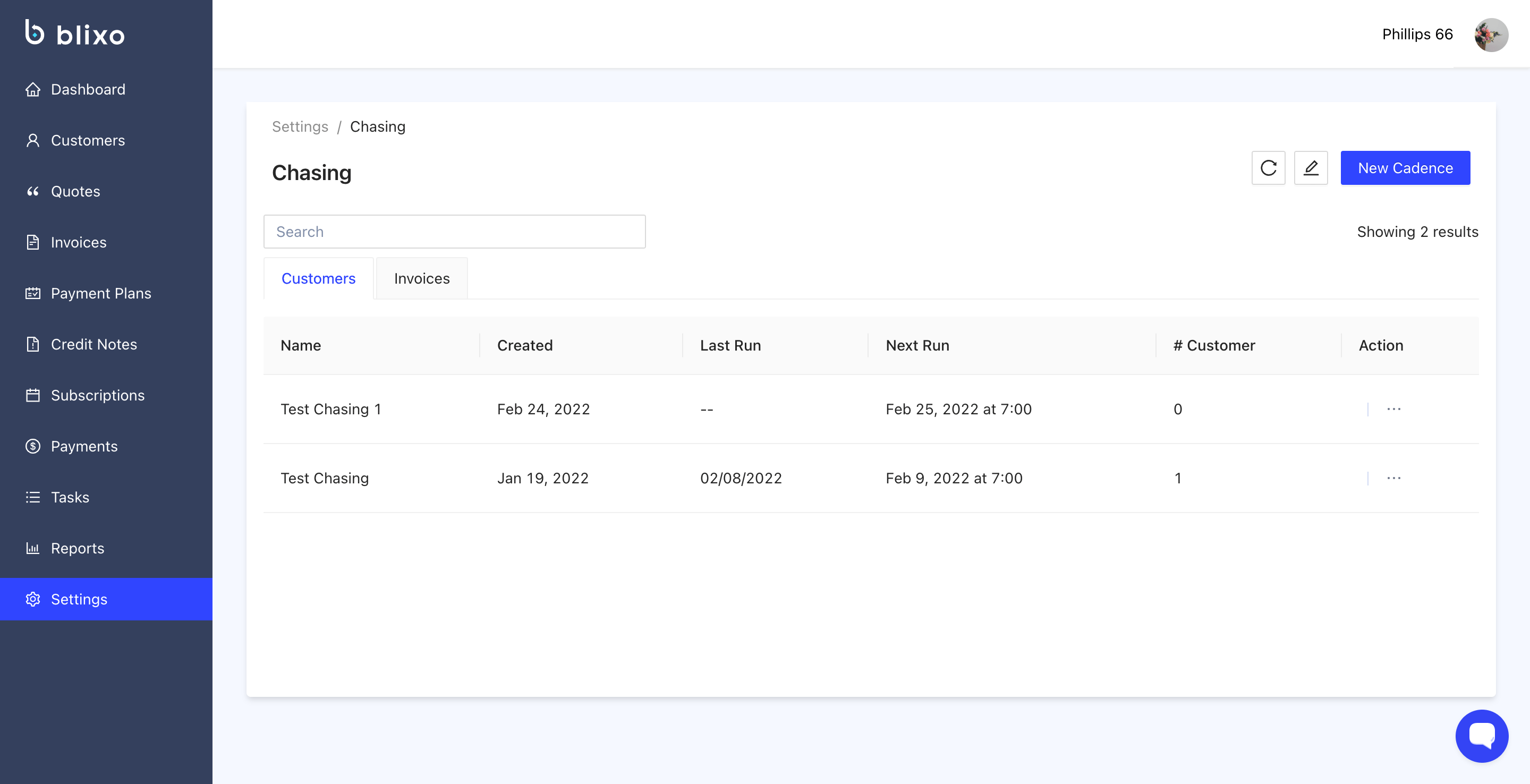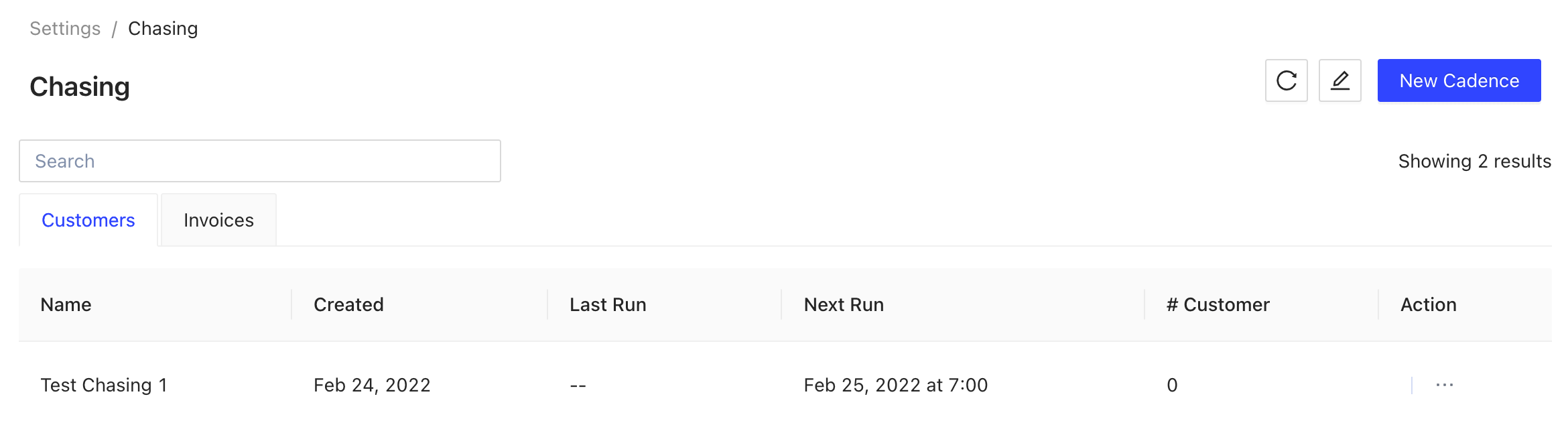 If you have created any cadences they will be listed here. We will create a new cadence by clicking the button “New Cadence”