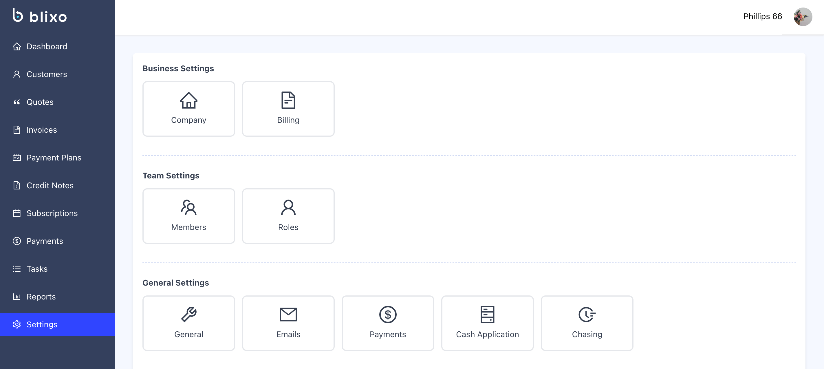 To get to the Chasing feature, you will need to click on settings on the Blixo sidebar,