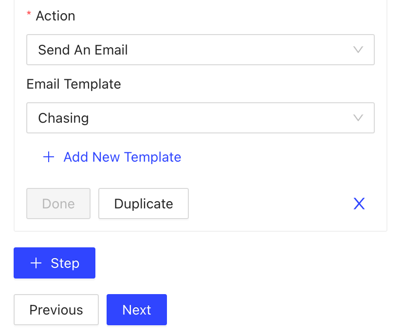 If you selected “Send an Email” you will either choose an existing template or “Add new Template” to create a new template that can be used,