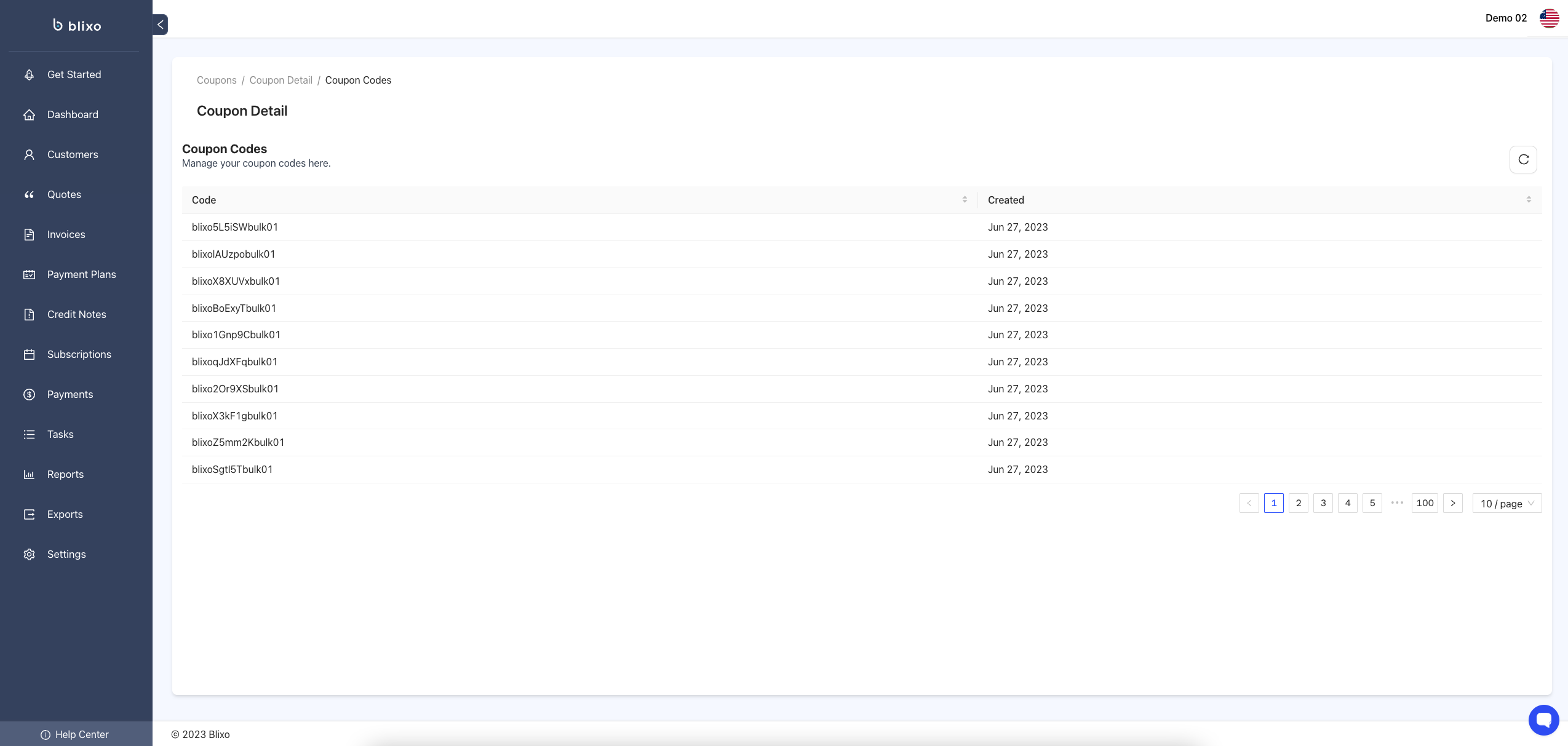 After generating unique codes for bulk coupon by Blixo, you can navigate to the Coupons page and click on the “View Codes” button. This will display a list of all the uniq codes associated with that particular bulk coupon. Please refer to the provided image below for a visual representation of the process.