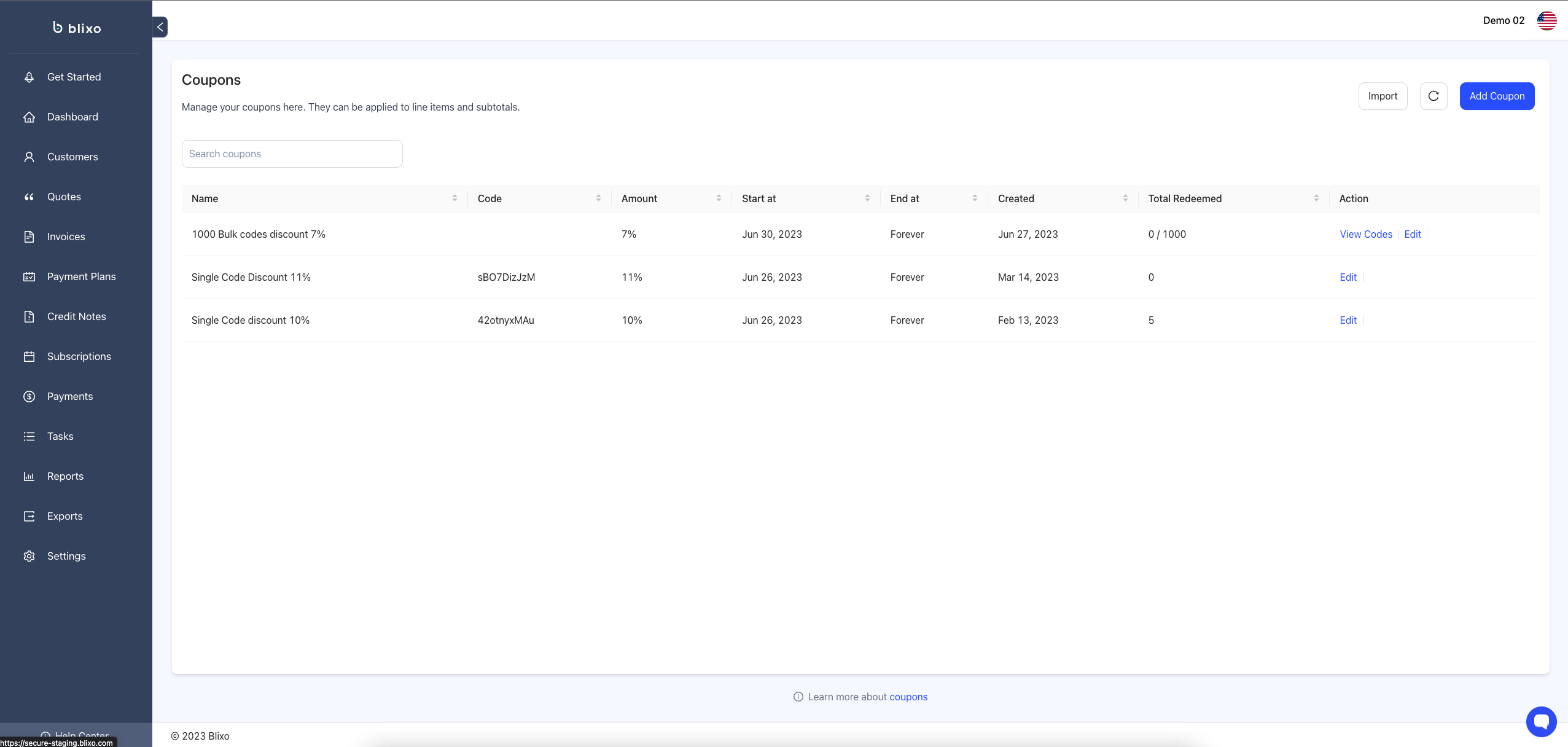 Please note that you can not redeem a coupon that is inactive, expired, or has already reached its maximum redemption limit. However, you can redeem multiple coupons on a single Invoice, Quote, or Credit Note if they meet the redemption criteria.