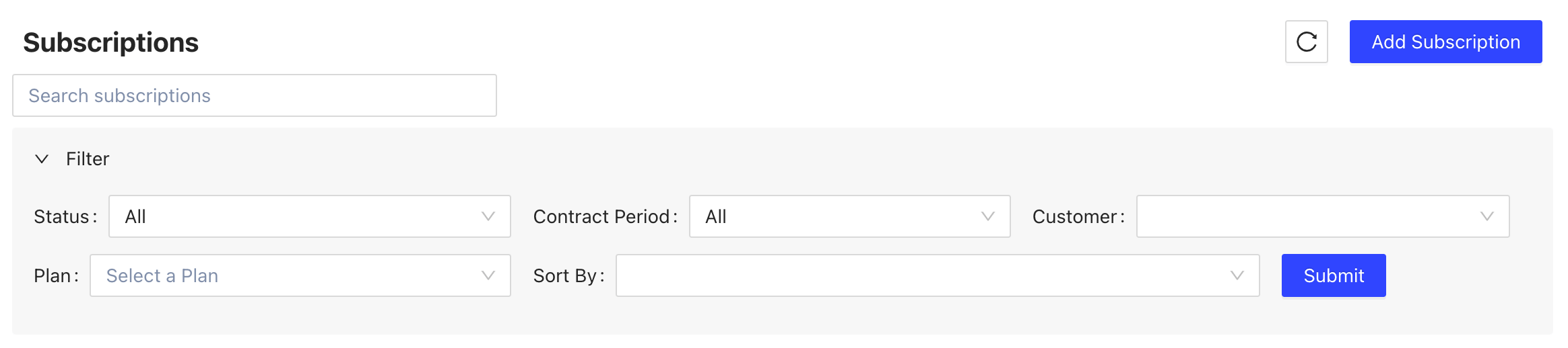 Here you can filter through the different customer’s subscriptions using the following dropdown menu options: